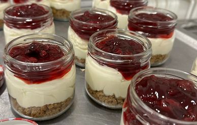 SINGLE SIZE CHEESECAKES CREATED WITH CREAMCHEESE MADE FRESH IN HOUSE.